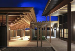 国道11号線を松山市内から東温市の方へ走ると、遠く皿ヶ峰を望む方向に田園地帯が展(ひろ)がっていく。こののびやかな景観の入口に、この夏、「マテラの森」がオープンした。ウェブサイトには、青空いっぱいに伸びた梢(こずえ)の緑の中に、「自然公園型ドライブイン」というキャッチコピーがおどっている。特長は何よりも自然公園型。ドライブインを構成するバーベキューコート、ドッグラン、駐車場、自然公園のそれぞれ四つのロゴマークが空に貼り付けてある。